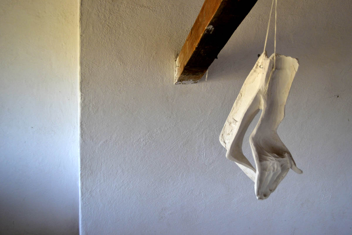 “Interstitial Castings” are negative space castings of people engaged in choreographies of the intimate. They are the interstitial space between two people engaged in iconic gestures like air-kissing, or pushing one another. Since first experimenting with this process I have built 3 series of Interstitial Castings, the sculptures from Guapamacataro are the first. They are three castings of the intimate gesture of listening. One is of Roberta as she leans in to talk to Iain, another is of Nicholas as he whispers to Juan, and a third is the Residency director, Alicia Marvan, listening to the walls at her favorite place at Guapamacataro.
