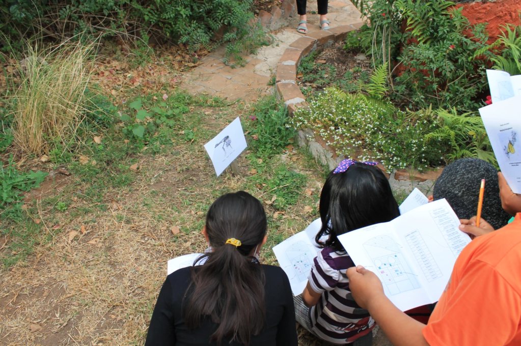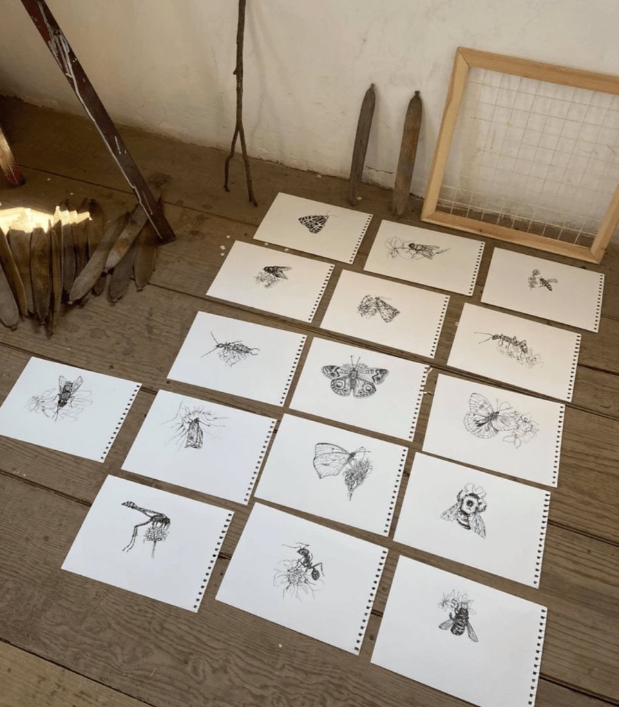 During her residency at Guapamacátaro, Anna created a series of ink drawings depicting the pollinators found at the hacienda. To identify them, she conducted entomological and botanical surveys in 16 distinct microclimates (one pollinator per survey, 4 surveys in each location: garden, old granary, woodland and field.) At the Open House community event local children participated in her pollinator project by searching for the pollinator drawings on site. They had a map and had to match each location to the right insect.