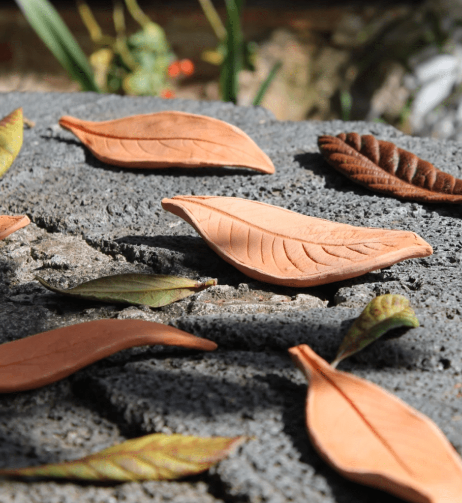 At Guapamacátaro, Emily explored her connection to the place and created site-specific clay works. Processing clay found on site, she sculpted a series of small vessels in the shape of found leaves. She also processed natural fibers to create paper pulp and reconstruct the leaves.