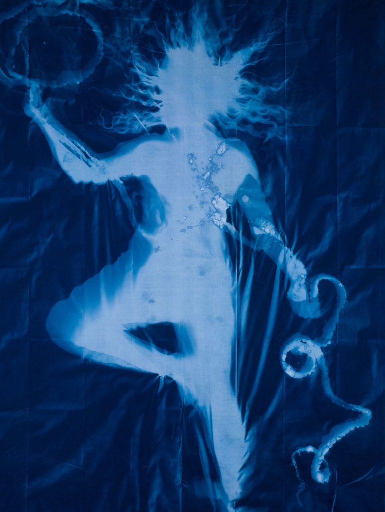 Alyssa Crane installation. Water, Bougambillia flower natural pigment.